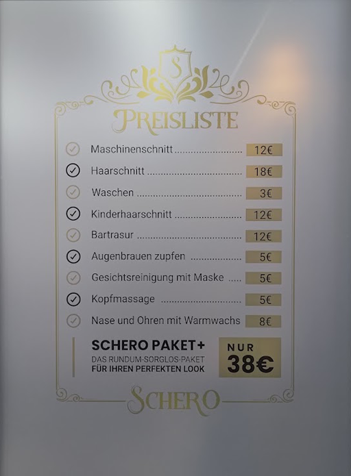 Schaufenster – Preisliste – Schero – Design, Druck und Anbringung vor Ort